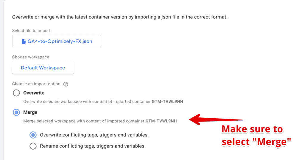 Then head to Google Tag Manager and import the container. If you don’t know how to import a container you can follow this tutorial here from Google.