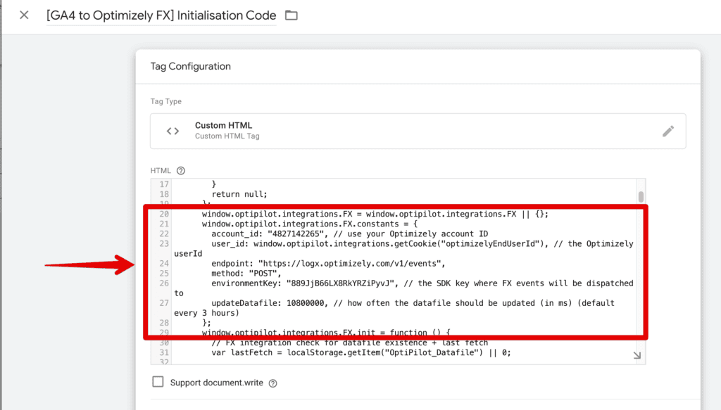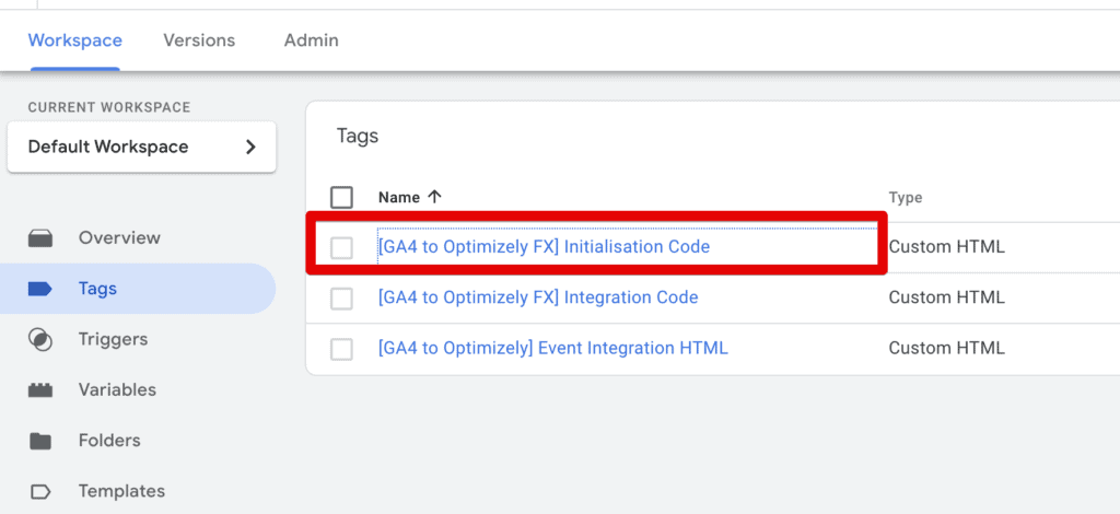 Once imported, a few new tags will be created in GTM. One of them will be called Initialisation Code